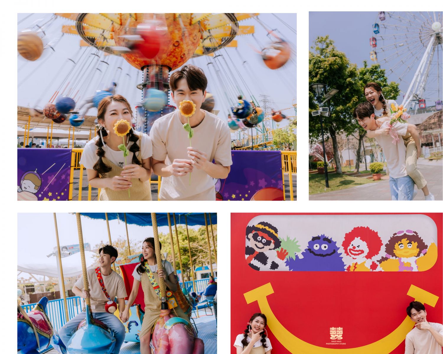 第一次拍婚紗照是透過 IG 找的個人攝影師,服裝則由攝影師合作的婚紗工作室提供,因此費用分開計算。當時選擇全外景拍攝,沒有棚拍。拍完之後覺得還是想留一些棚內場景,所以才有了第二次的拍攝。
