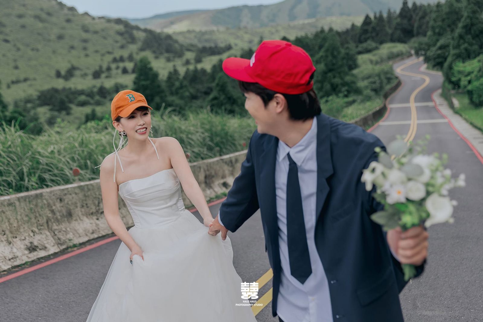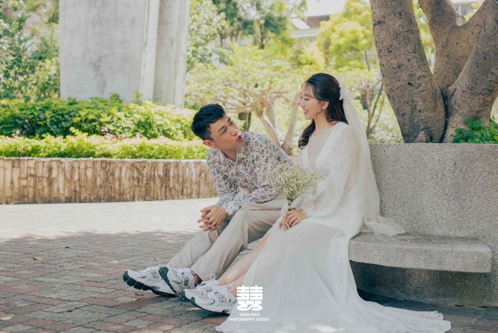 場景與道具: 陽光灑落的森林草地、充滿自然光的攝影棚,或是帶有復古感的老街街景。搭配一束充滿線條感的鮮花捧花,就能點綴出浪漫氣息。