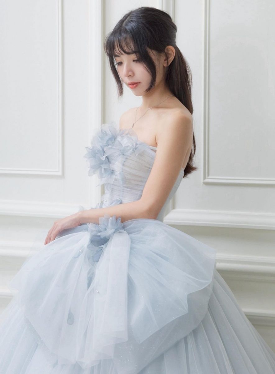 第五套 | 莫蘭迪藍立體花飾蓬裙晚禮服